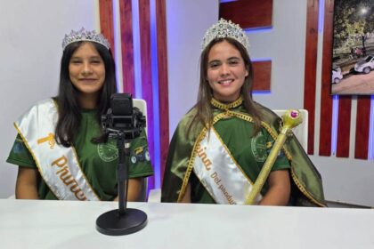La flamante Reina de los Productores del Paraje El Carmen, Ana Paula García, junto a la Primera Princesa, Priscila Martínez,…