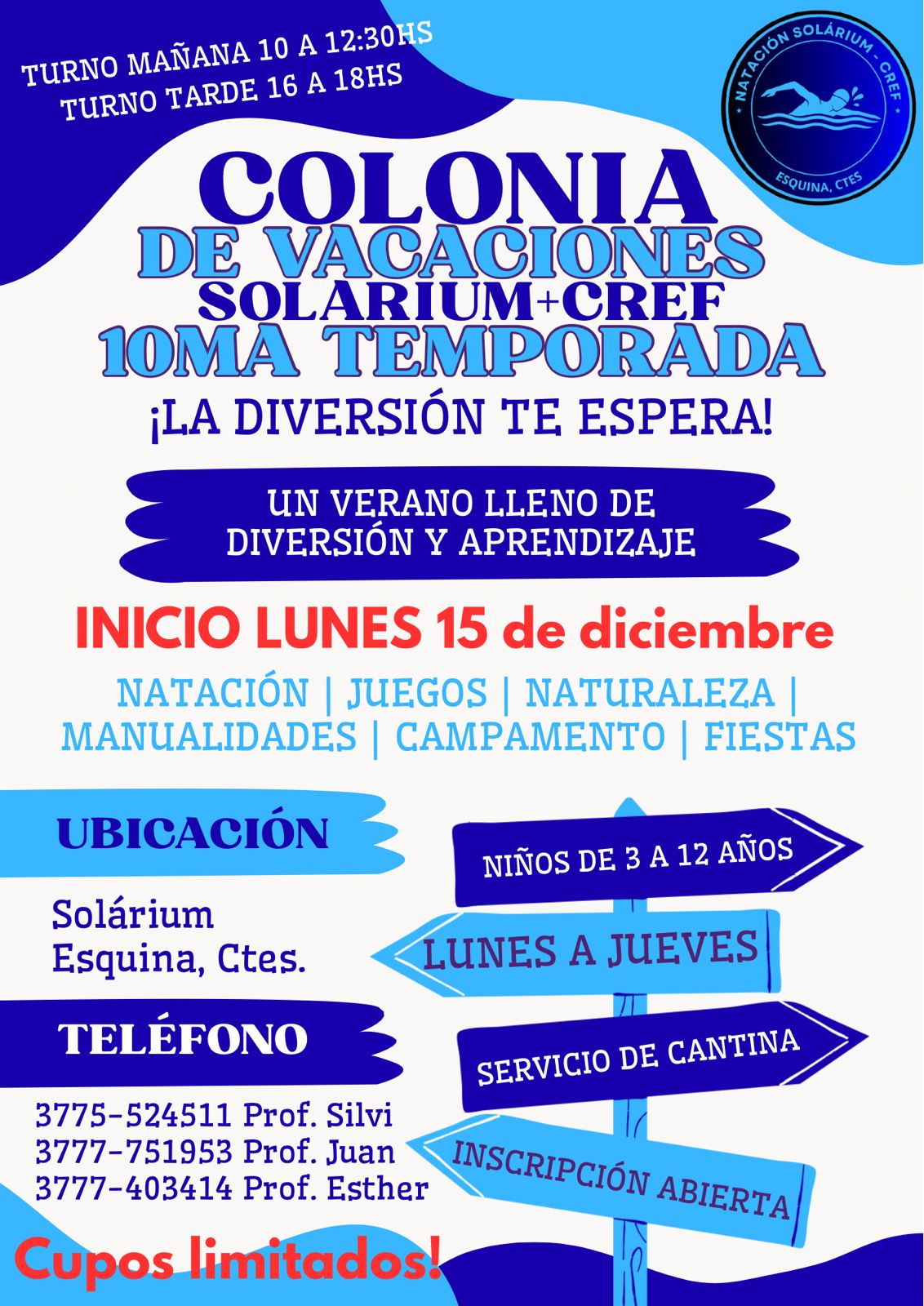 La profesora Silvina González anunció el lanzamiento de la décima temporada de la tradicional Colonia de Vacaciones CREF, que este año llega con una importante novedad: el equipo obtuvo la concesión total de la pileta del Solárium de Esquina, donde funcionarán de ahora en adelante todas las actividades acuáticas.