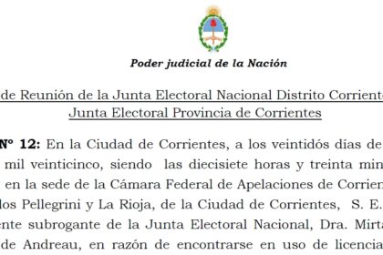 Por Acta N° 12 la Junta Electoral Nacional, conjuntamente con la Junta Electoral resolvieron la situación del Circuito 34° en…