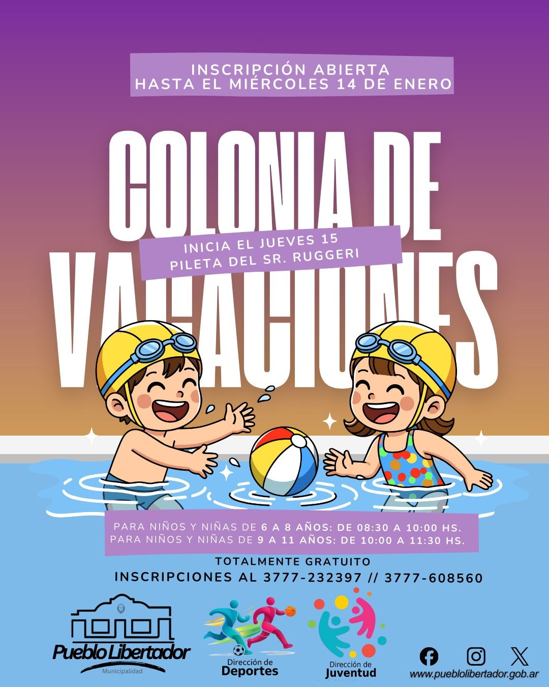 La Municipalidad de Pueblo Libertador informó que ya se encuentra abierta la inscripción para la Colonia de Vacaciones 2026, una propuesta gratuita destinada a niños y niñas de la localidad.