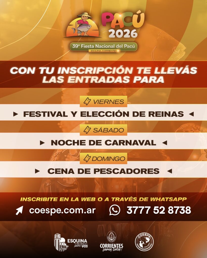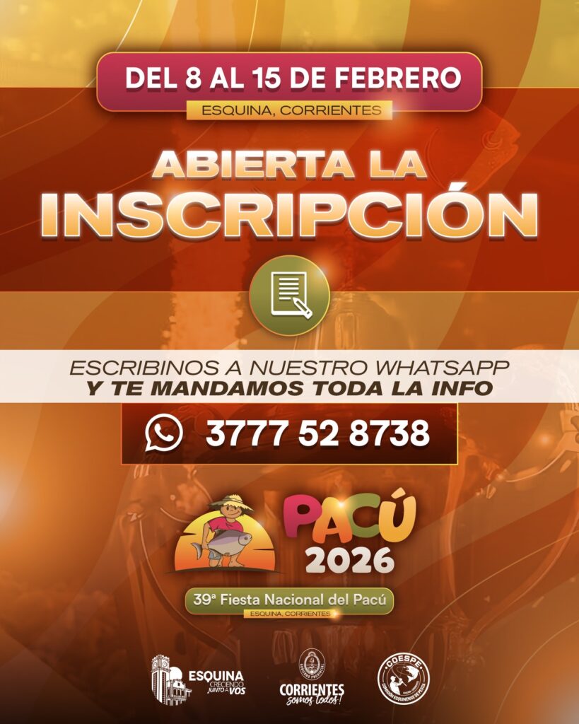 Esquina, Corrientes, se prepara para vivir una nueva edición de la Fiesta Nacional del Pacú, uno de los eventos más importantes de la pesca deportiva y la cultura local. A partir de mañana, sábado 3, quedará oficialmente abierta la inscripción para los equipos que deseen participar del tradicional torneo.