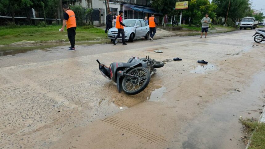 Por causas que aún se investigan, una motocicleta 110 cc que circulaba desde el barrio Bicentenario hacia el centro de la ciudad colisionó contra un automóvil Chevrolet Corsa, conducido por un hombre de apellido Schweizer. A raíz del impacto, el conductor del rodado menor y su acompañante cayeron sobre la cinta asfáltica.