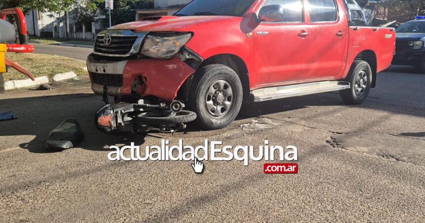 El sábado 11 de octubre, alrededor de las 16:50 horas, se registró un accidente de tránsito en la intersección de las calles 25 de Mayo y Reconquista, en la ciudad de Esquina.