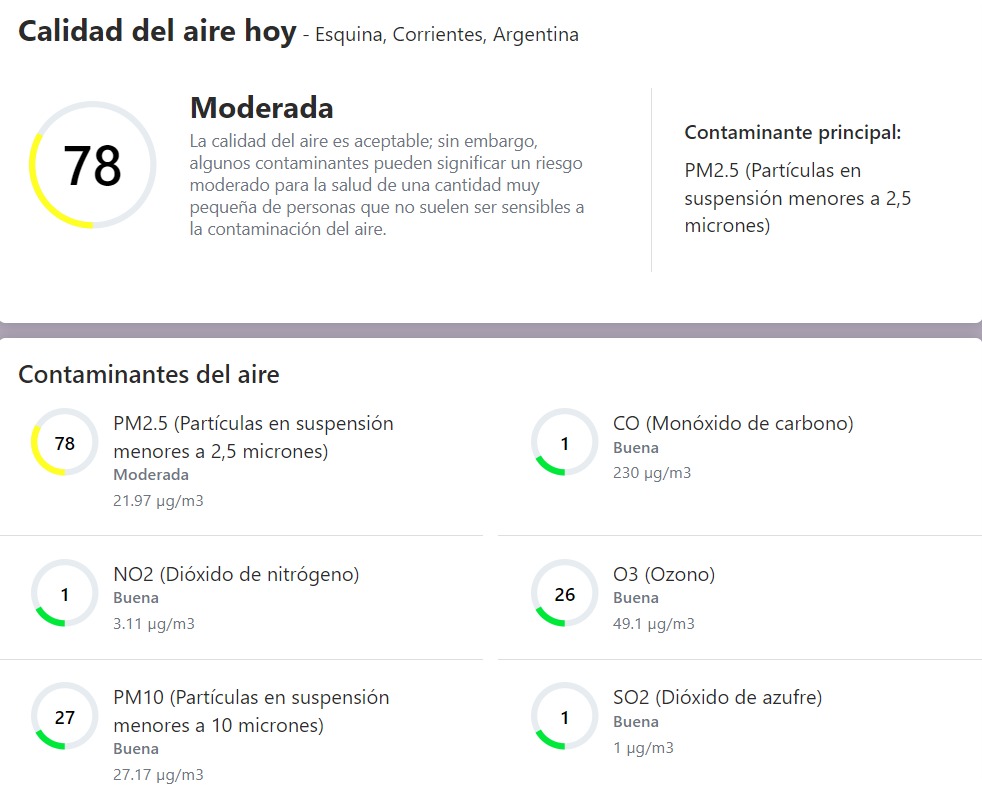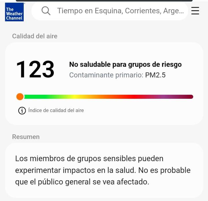 La calidad del aire en la provincia de Santa Fe y Corrientes ha alcanzado niveles preocupantes debido al humo generado por la quema de pastizales y basura en la región. En Esquina el jueves se ha registrado una concentración de 123 microgramos de partículas por metro cúbico, una cifra alarmante que supera los límites de salubridad recomendados.