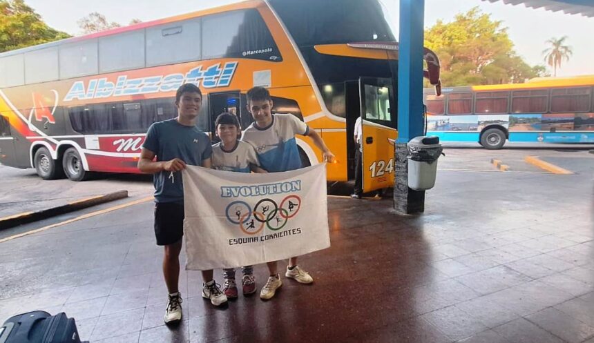 Anoche, los alumnos de Evolution Esquina Gimnasia Artística emprendieron viaje hacia la ciudad de Rosario, donde los representantes de la rama masculina participarán del Campeonato Nacional. Las competencias se desarrollarán desde hoy hasta el sábado, en las categorías Infantil, Juvenil y Mayor.