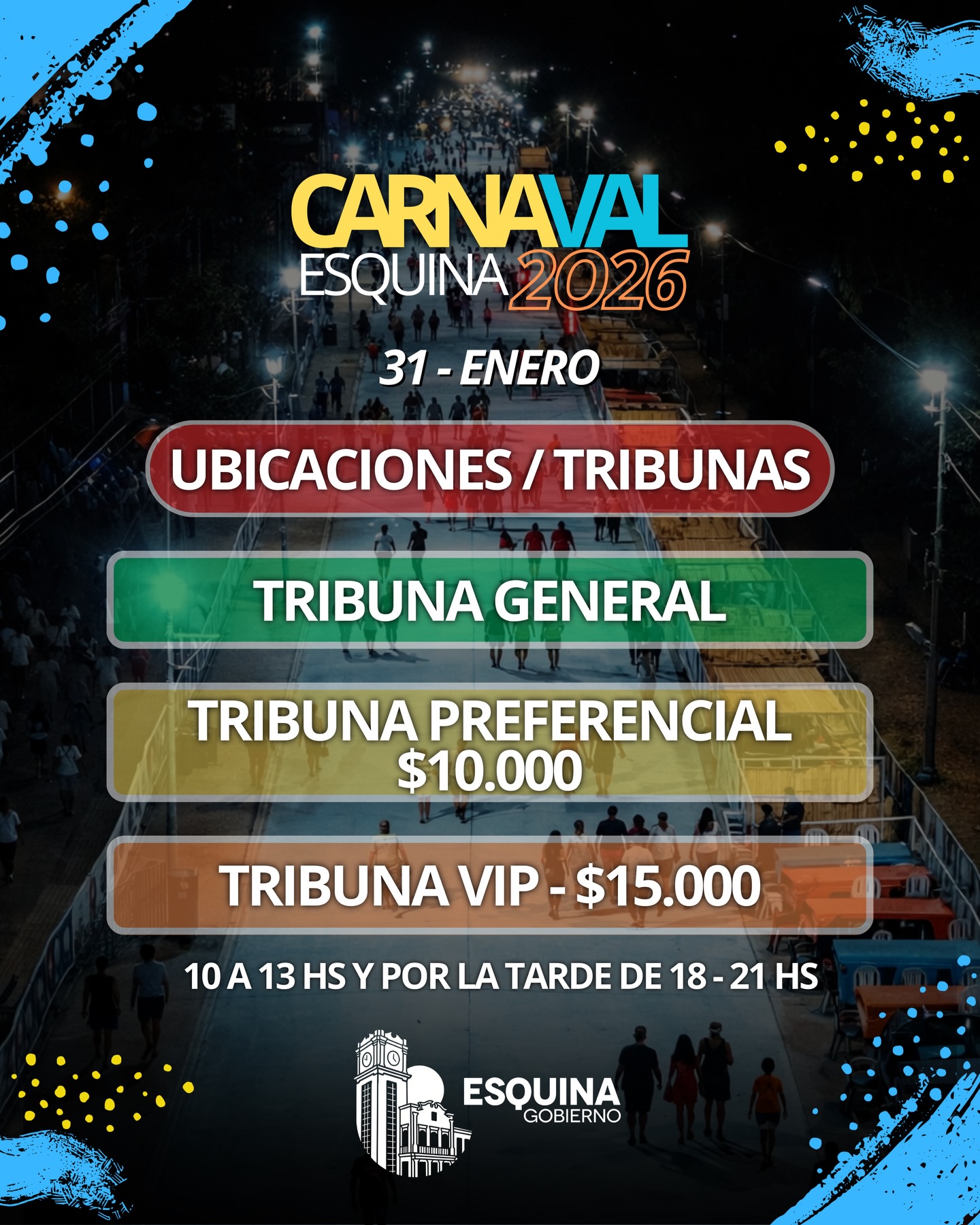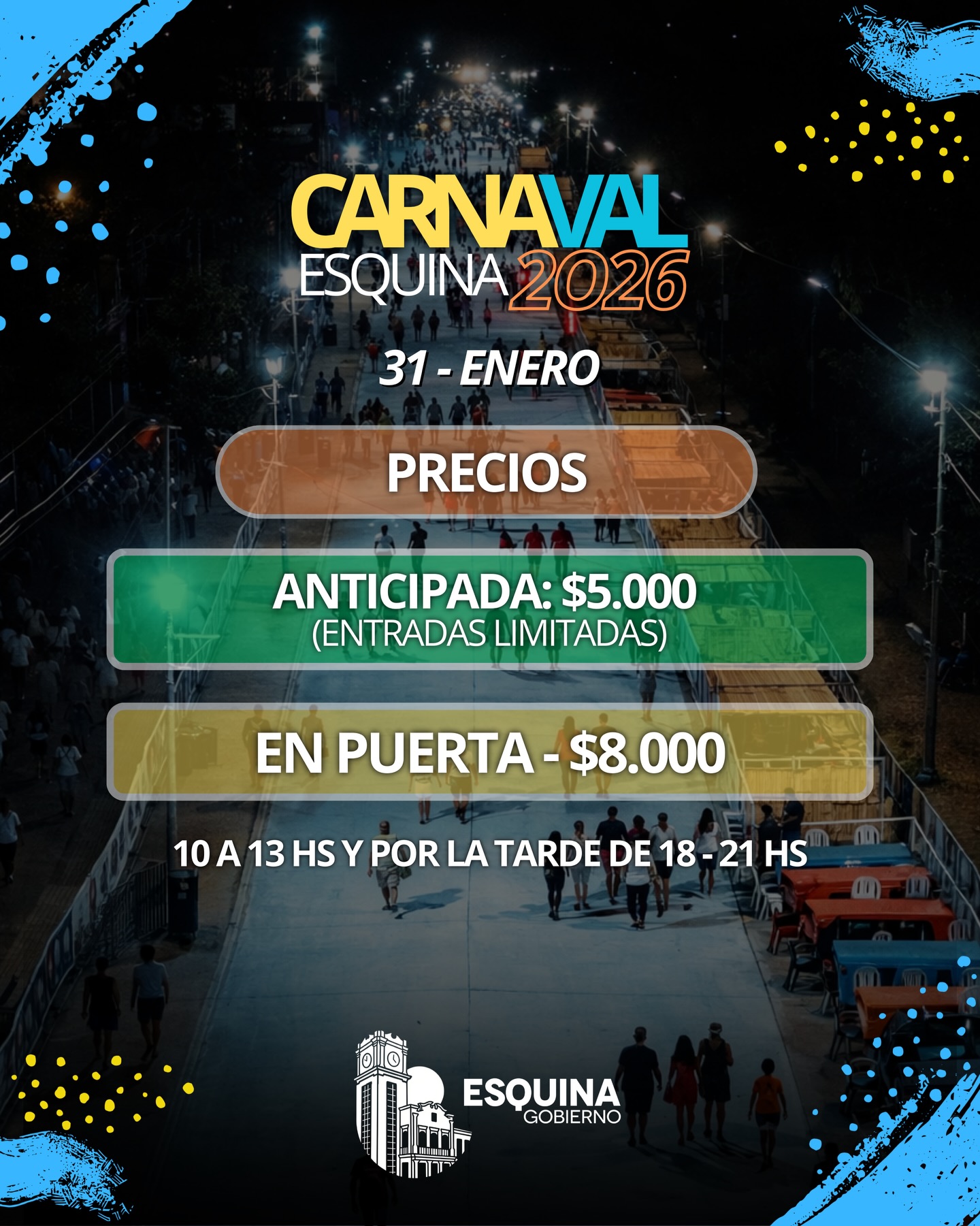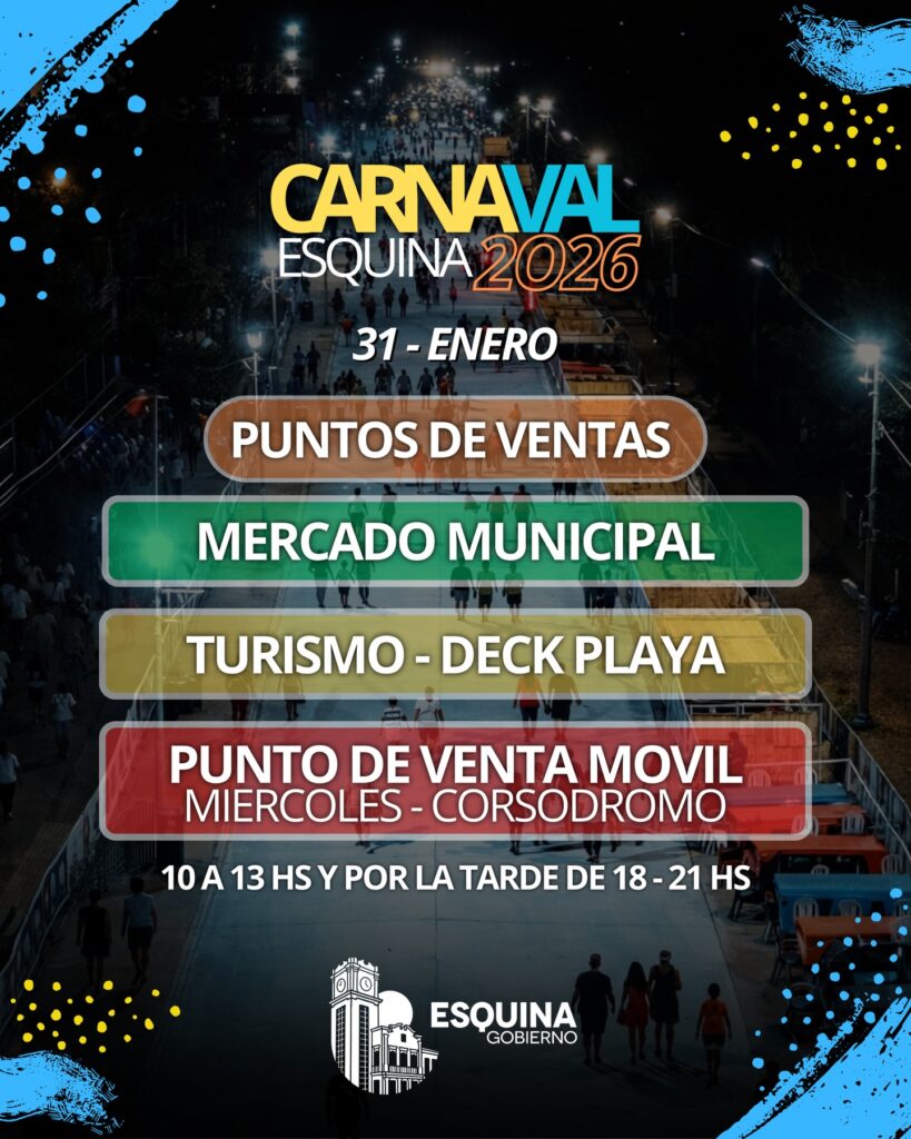 Desde este miércoles comienza la venta de entradas para vivir una de las celebraciones más esperadas por vecinos y turistas: el Carnaval Esquina 2026, que se realizará el 31 de enero en el corsódromo de la ciudad.