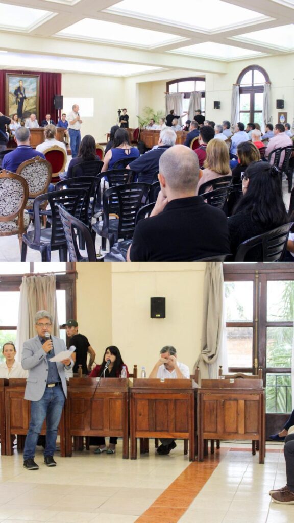 El intendente municipal, Cristian Olivetti, junto a integrantes del gabinete, participó de la audiencia pública convocada por el Honorable Concejo Deliberante de Esquina para analizar el Informe Final del Plan de Gestión Ambiental del predio donde funciona el basural a cielo abierto de la ciudad.