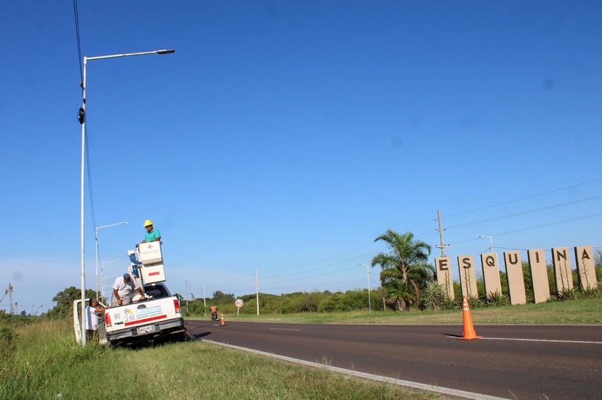 La Municipalidad de la Esquina continúa llevando adelante trabajos de mejora en la infraestructura urbana, en este caso mediante la reposición de luminarias LED en la zona de ingreso por Camino del Medio.
