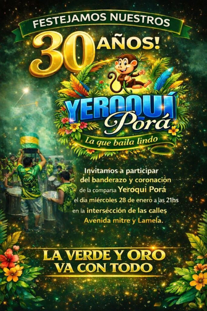 Bajo el lema “La Verde y Oro va con todo”, Yeroquí Porá anticipa una noche cargada de festejos y alegría.