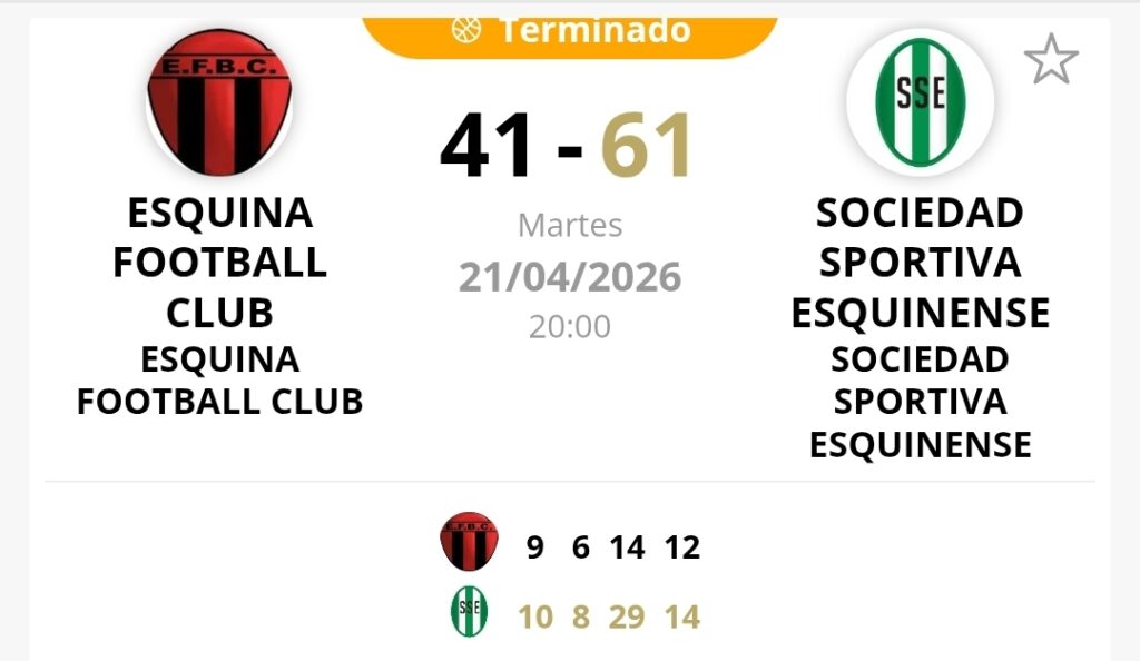 Los parciales marcaron 19 a 8 y 8 a 6 en la primera mitad. La máxima diferencia llegó en el tercer cuarto, cuando Sportiva dominó ampliamente por 29 a 14, mientras que el último período fue nuevamente favorable al ganador por 14 a 12, sellando así una sólida victoria.