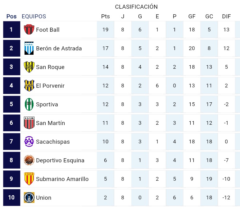 Con este resultado, Berón de Astrada alcanzó los 17 puntos y se ubica como escolta de Foot Ball, mientras que El Porvenir continúa sumando y demostrando solidez en el certamen.