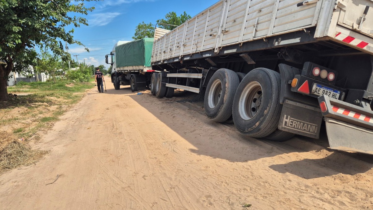 En horas de la siesta de este miércoles, en la localidad de Esquina, un camión con acoplado cargado con piedras protagonizó un incidente al hundirse parcialmente en calle Raúl Castillo, continuidad de Primera Junta, mientras se dirigía hacia un corralón.