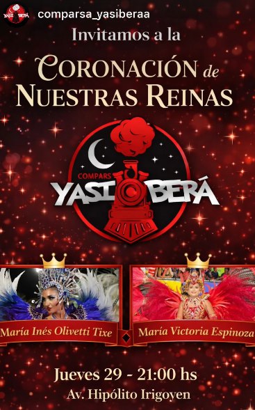 Por su parte, Yasí Berá proclamará a Inés Olivetti (Yasí Berá) y a Victoria Espinoza (Yasí Beracitos).