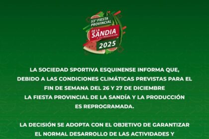 Desde la Sociedad Sportiva Esquinense se informó que, debido a las condiciones…
