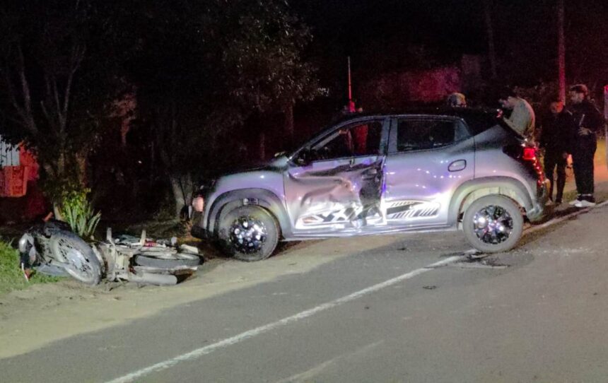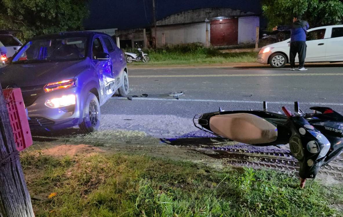 El siniestro ocurrió a la altura comprendida entre las calles Los Ceibos y Los Lirios, cuando un automóvil Renault Kwid que se encontraba sobre la banquina habría intentado realizar una maniobra de giro en “U”. En ese momento, una motocicleta de 110 cc que circulaba en la misma dirección no logró esquivarlo, impactando contra el vehículo y provocando la caída del conductor y su acompañante.