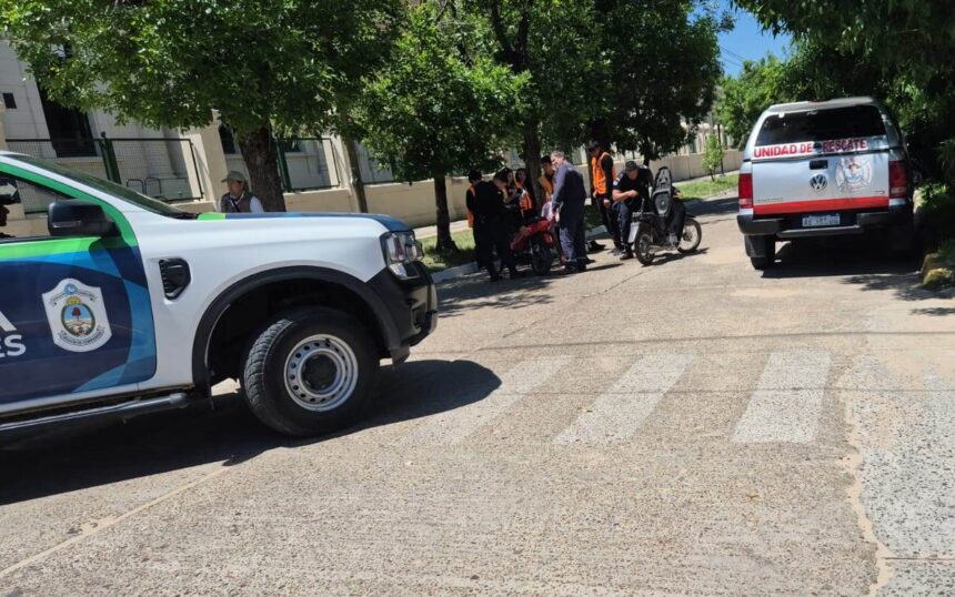 En horas del mediodía de este martes se registró un accidente de tránsito en la esquina de las calles Mitre y Rivadavia, donde colisionaron dos motocicletas. Según testigos, una de ellas circulaba en contramano y era conducida por una joven de apellido Vega, mientras que la otra moto estaba al mando de un hombre identificado como Aloy.