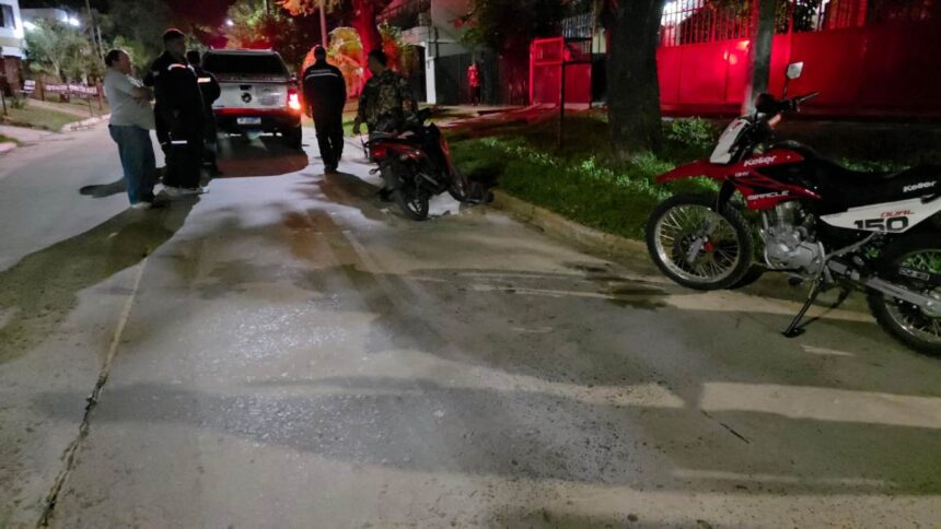 Un accidente de tránsito ocurrido el viernes, minutos antes de las 21 horas, dejó como saldo dos motociclistas lesionados tras una colisión registrada en una esquina céntrica de la ciudad.
