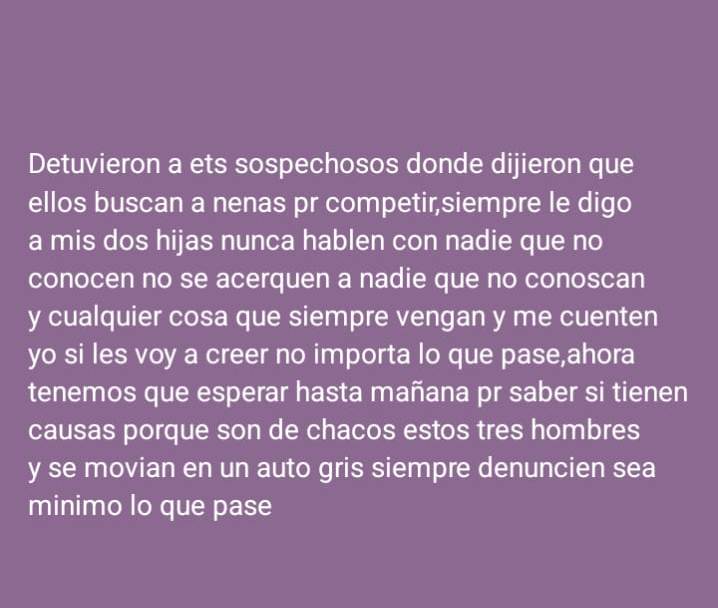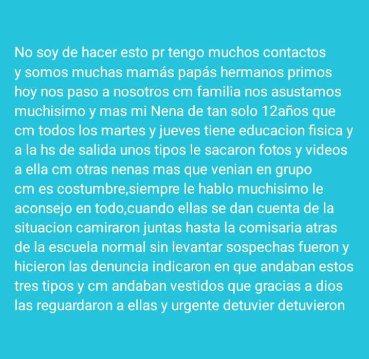 Familias señalaron que decidieron hacer pública la advertencia para reforzar el cuidado de los menores y recomendaron a los chicos no dialogar con desconocidos y avisar inmediatamente a adultos ante cualquier situación sospechosa.