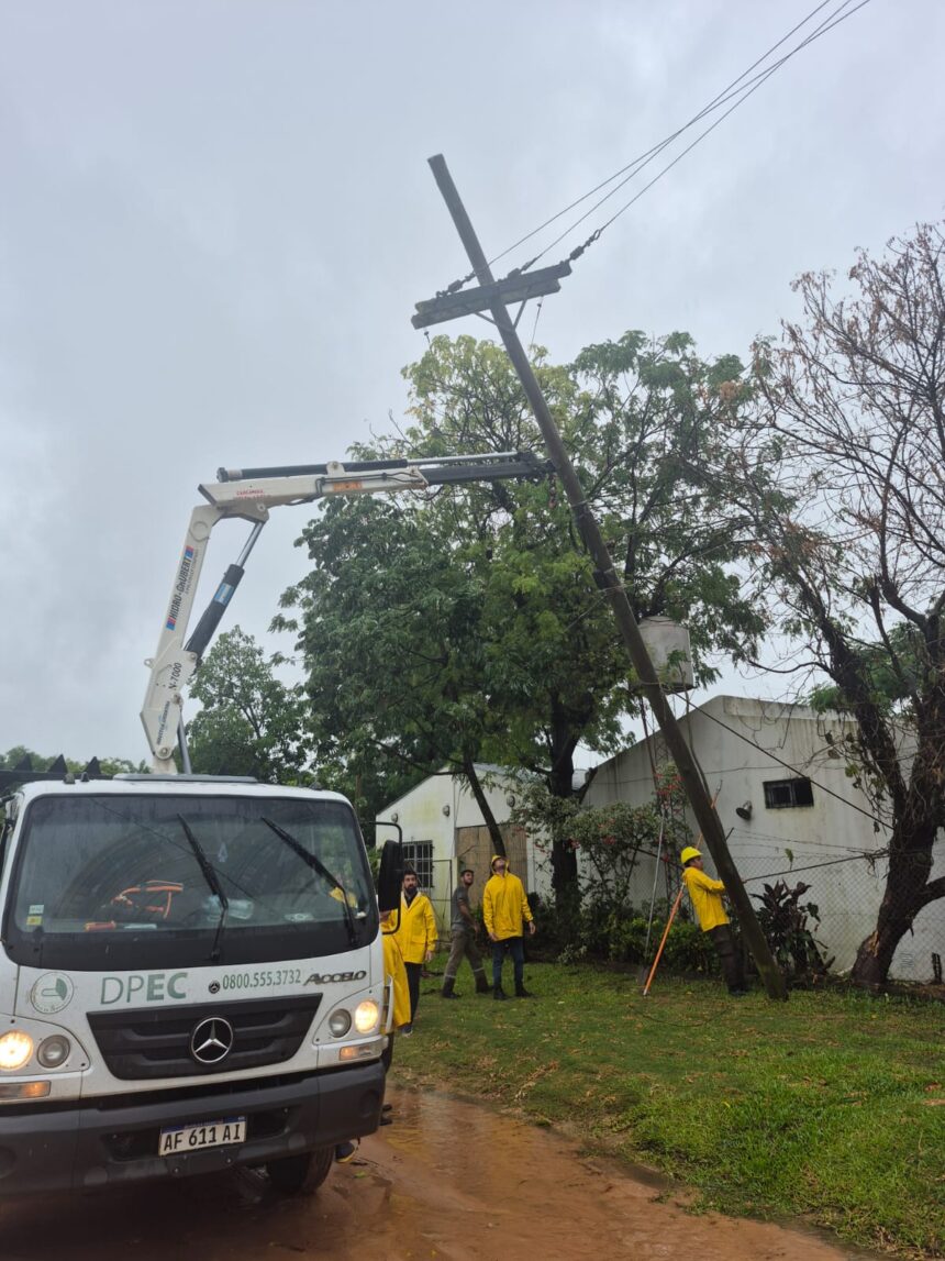 Además, ante la caída de cables del tendido eléctrico, desde la DPEC se informó que se logró normalizar el servicio de los distribuidores urbanos 1 y 2, y el personal sigue trabajando sin pausas en la recuperación de columnas de hormigón y cables dañados.