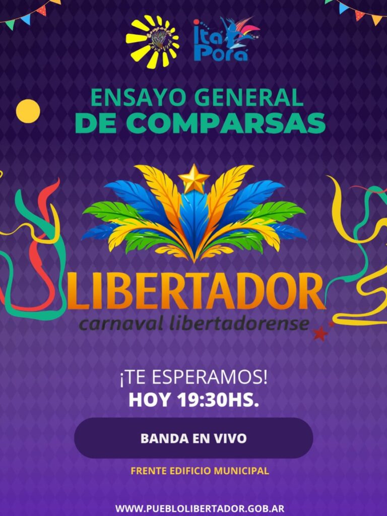 Libertador se prepara para vivir una nueva edición de su tradicional carnaval con la llegada de los Corsos Oficiales 2026, que darán inicio el sábado 17 de enero y continuarán el 24 de enero, sobre el Boulevard San Martín. El sábado 10 se supendió debido a consiciones climáticas. El evento contará con la participación de las comparsas Itá Porá y Tavá Verá, que ya tienen definidos sus temas y figuras principales para esta temporada.