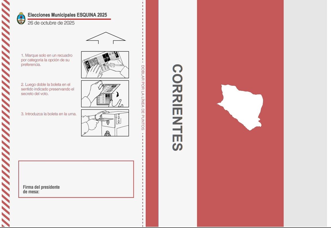 Ya se conoce el diseño oficial de la Boleta Única de Papel (BUP) que utilizarán los vecinos de la ciudad de Esquina en las elecciones municipales del próximo domingo 26 de octubre, en simultáneo con los comicios legislativos nacionales.