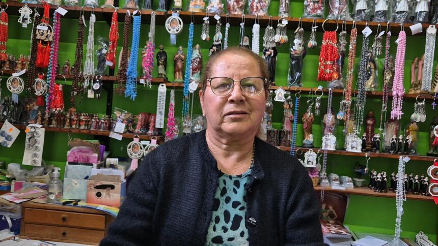“Todos quieren llevar un recuerdo de Santa Rita. Siempre buscan algo: agua bendita, estampitas, rosarios, medallas”, contó Francisca Martínez, quien con dedicación atiende a los fieles y les ofrece una variedad de artículos religiosos.