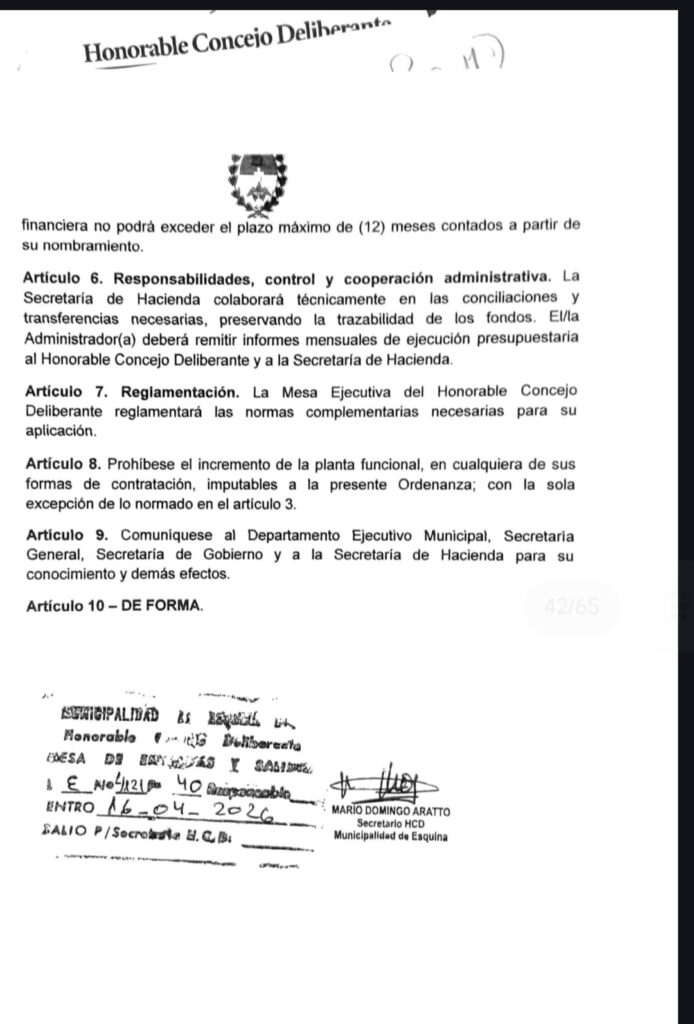 Ahora, el proyecto deberá ser revisado en comisión y debatido por los concejales, quienes decidirán sobre su aprobación, modificación o rechazo. De avanzar, esta ordenanza representaría un cambio significativo en el funcionamiento del Concejo Deliberante, consolidando principios de autonomía, eficiencia y separación de poderes en el ámbito municipal.