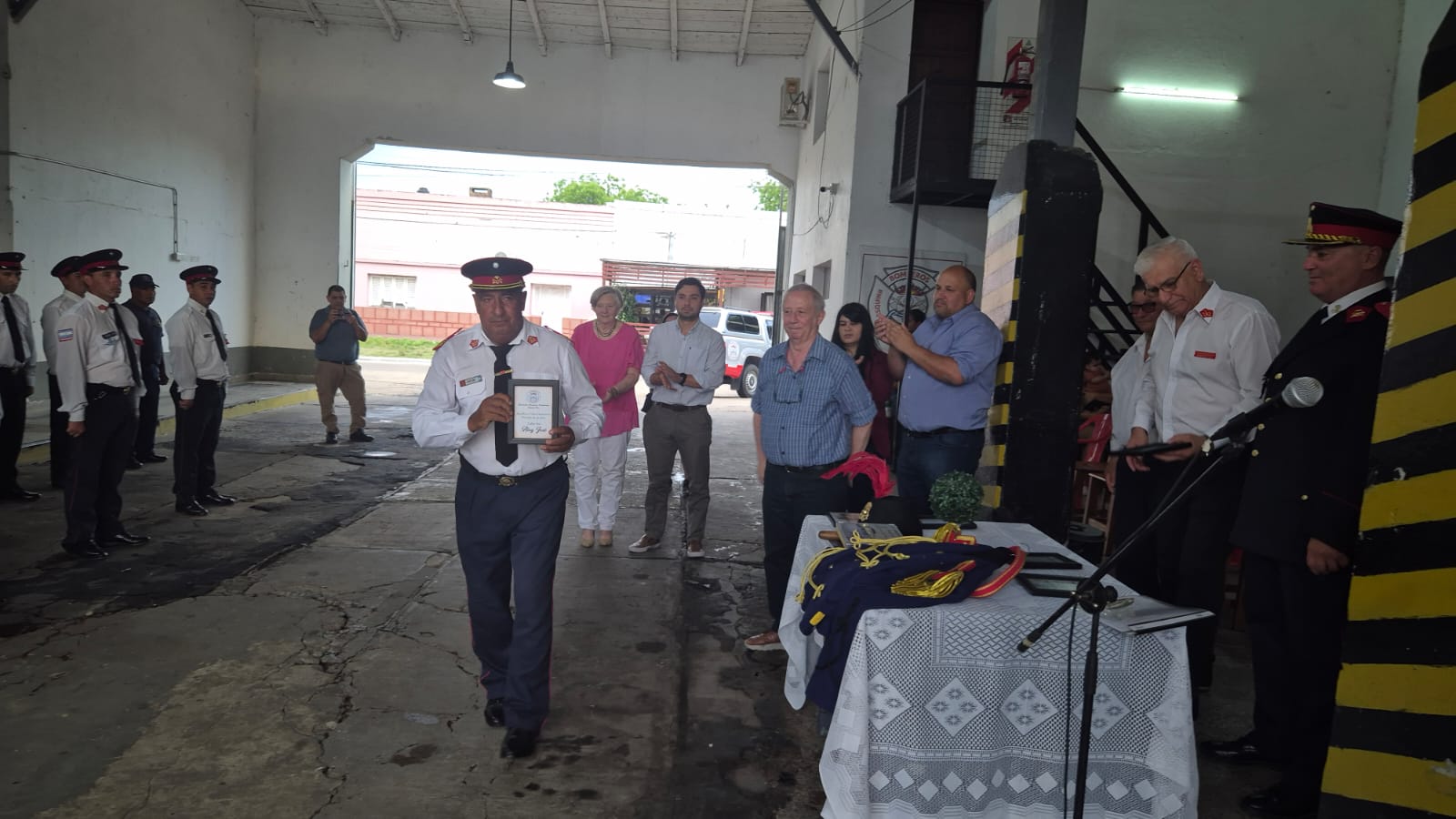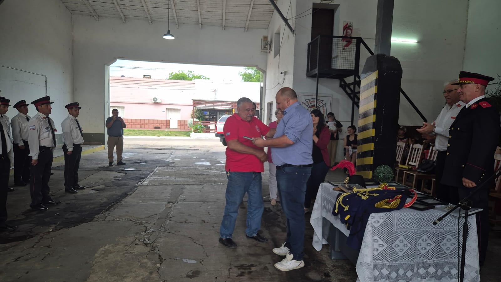 Entre las delegaciones presentes, participó una representación de los Bomberos Voluntarios de Ensenada, padrinos del cuartel de Esquina, quienes brindaron unas palabras de acompañamiento. Asimismo, los hijos del primer presidente de la institución, Gualberto Rodríguez, hicieron entrega de recordatorios a la comisión actual, gesto que unió pasado y presente en una misma celebración.
