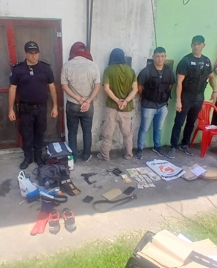 El propio fiscal se constituyó en el lugar y, gracias al rápido despliegue, ambos hombres fueron detenidos, por efectivos policiales de Libertador. En su poder se secuestraron 3.415.000 pesos —la mayor parte del dinero sustraído— y dos pistolas, una calibre 9 milímetros y otra 11,25, ambas con cargadores y municiones. El dinero faltante habría sido utilizado para pagar 70 mil pesos al remisero que los trasladó y en la compra de bebidas.