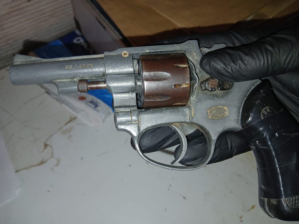 En el mismo domicilio, de manera separada, se secuestró además un revólver calibre 22 largo con capacidad para ocho proyectiles, de los cuales tres estaban intactos, sin documentación legal y de procedencia dudosa.