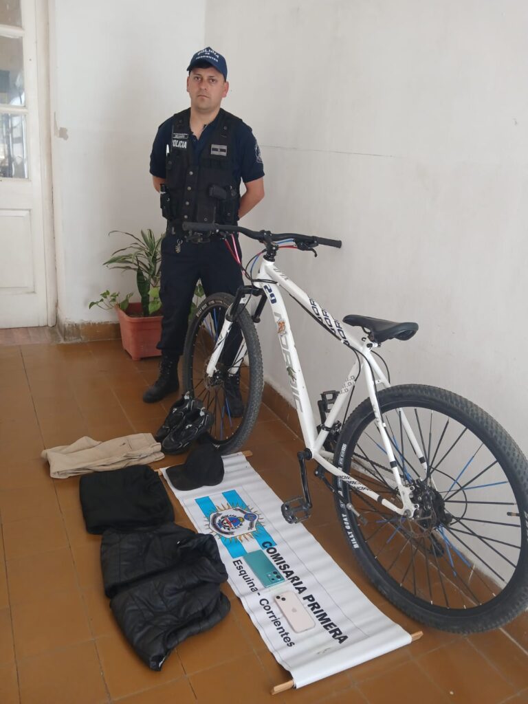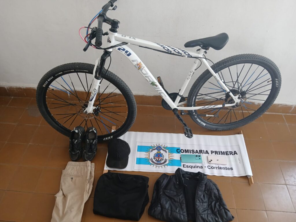 La Policía de Esquina recuperó celulares robados y esclareció dos hechos delictivos en un comercio de avenida 25 de Mayo. En el allanamiento a un menor sospechoso secuestraron prendas de vestir, una bicicleta utilizada en la fuga y hasta un revólver calibre 22 sin documentación.