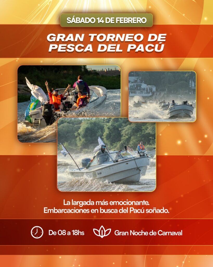 El momento más esperado llegará el sábado 14 de febrero, con el Gran Torneo de Pesca del Pacú, que se desarrollará de 08 a 18 horas, ofreciendo la largada más emocionante, con embarcaciones surcando el río en busca del pacú soñado. La jornada culminará con una Gran Noche de Carnaval, sumando brillo, ritmo y alegría a una fiesta que ya es tradición.