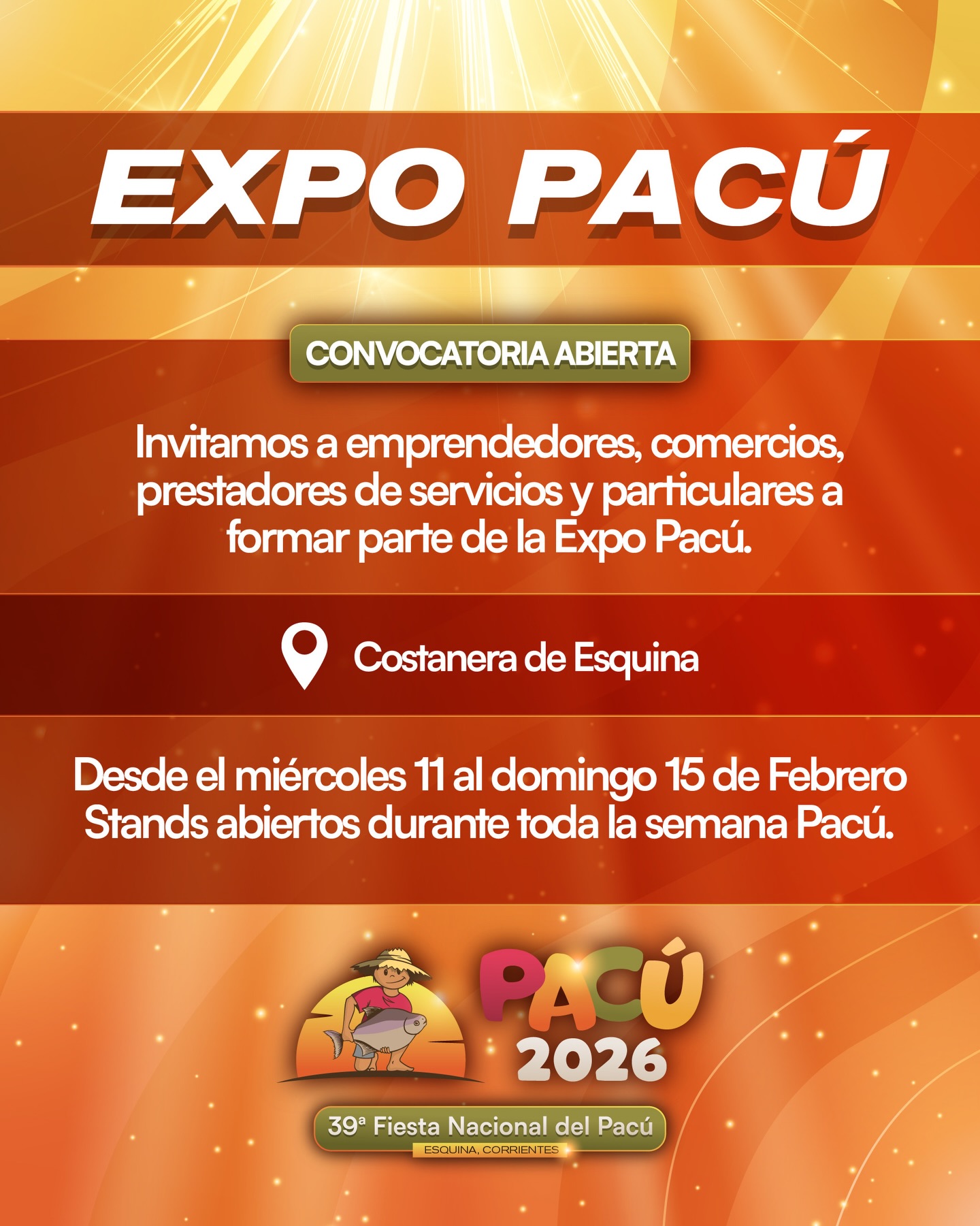 Bajo el lema #SemanaPacú, vecinos y visitantes podrán disfrutar de propuestas que resaltan la identidad local, el río y las tradiciones esquinenses. La programación incluye pesca de costa, torneo de truco, gran peña de pescadores, festival musical con elección de reina, el esperado torneo de pesca, y el cierre con cena show y entrega de premios.