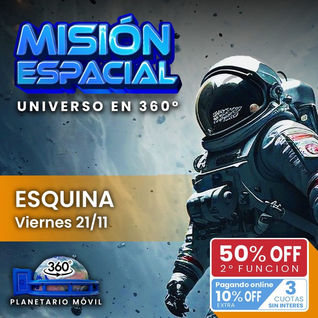 Este viernes 21 de noviembre, Esquina se prepara para disfrutar de una propuesta diferente, educativa y completamente inmersiva. El Planetario Móvil 360° aterriza en la ciudad con funciones para toda la familia, ofreciendo una experiencia visual y sensorial que promete sorprender a grandes y chicos.