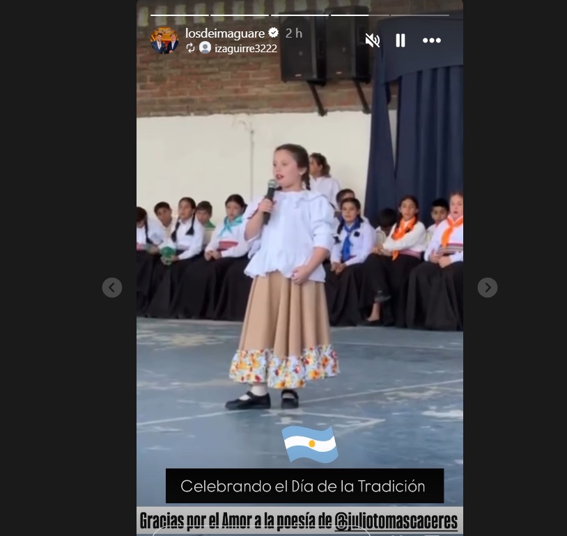 El gesto no pasó inadvertido. Al día siguiente, Julito Cáceres compartió en la cuenta oficial de Los de Imaguaré en Instagram el video del recitado y dedicó unas palabras de agradecimiento a la niña esquinense, destacando su amor por la poesía y su aporte a la preservación de las tradiciones correntinas.