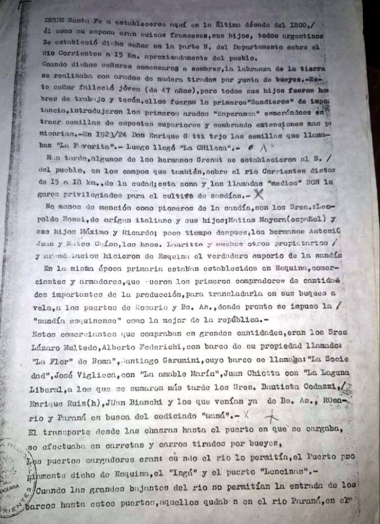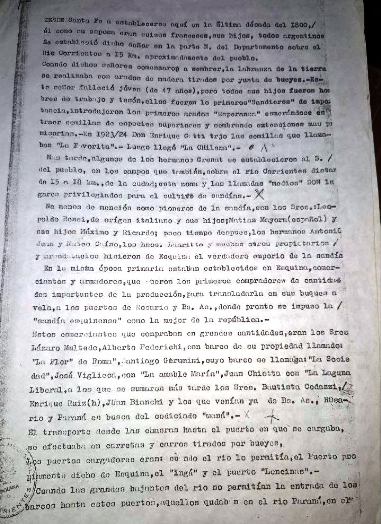 Ellos fueron los primeros “sandieros” de importancia, introduciendo nuevas variedades y mejorando la calidad de la producción. En los años 1923/24, don Enrique G. incorporó la semilla conocida como “La Favorita”, y posteriormente se difundió la variedad “La Chilena”.