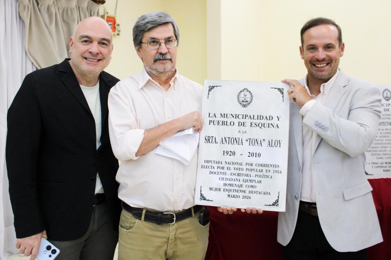Durante el acto se rindió homenaje a Antonia “Tona” Aloy, militante peronista y diputada nacional por Corrientes electa por el voto popular en 1954. Su trayectoria política marcó un hito en la participación femenina, en una etapa histórica que se abrió tras la conquista del voto femenino impulsada por Eva Perón. Aloy también se destacó como docente, escritora y ciudadana comprometida con la vida pública.