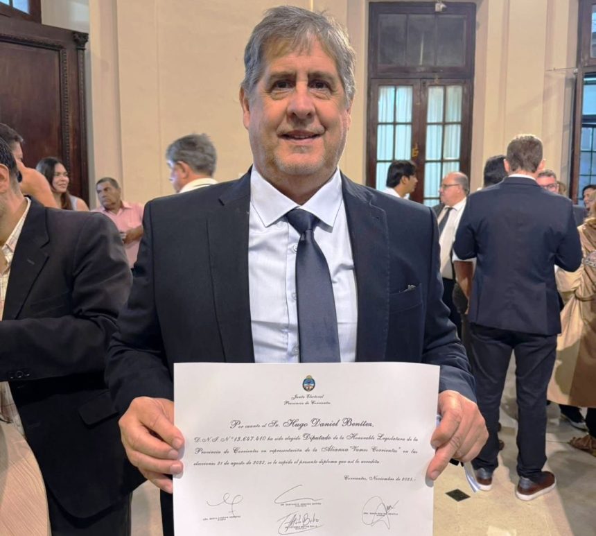 El intendente saliente de la ciudad de Esquina y diputado provincial electo, Hugo Benítez, recibió su diploma en el acto oficial realizado por la Junta Electoral de la Provincia.