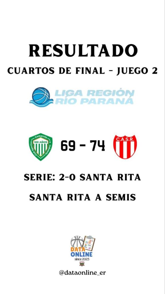 En tanto, Santa Rita hizo lo propio ante Comercio, imponiéndose por 74 a 69, asegurando también el 2-0 en la serie.