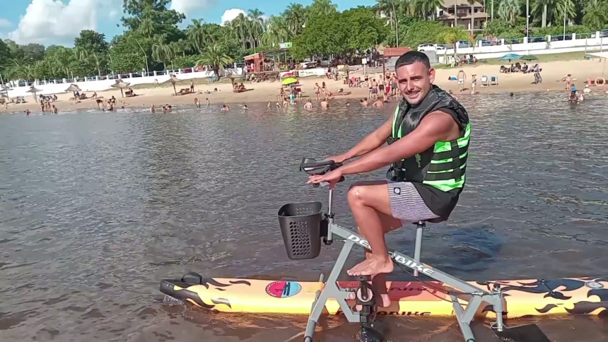 Una novedosa propuesta turística comenzó a llamar la atención en la ciudad de Esquina. Se trata de bicicletas acuáticas, un emprendimiento impulsado por Julen Coyne, integrante del proyecto Angiru Bike.