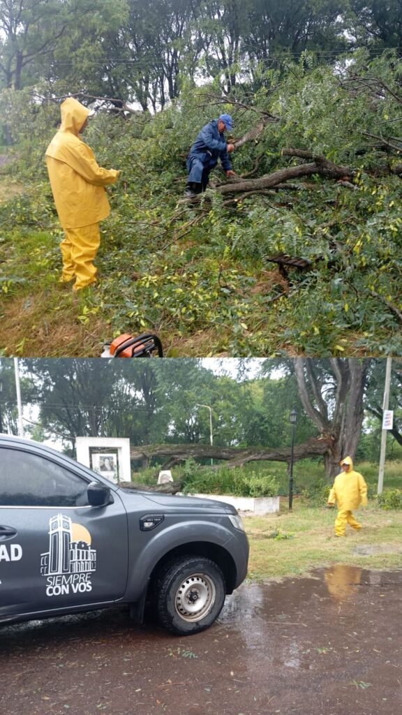 Desde la Municipalidad de Esquina, a través del área de Defensa Civil y junto al equipo municipal, se trabajó en el lugar luego de que se desprendiera parte de un árbol de gran tamaño, generando una situación de riesgo para la comunidad educativa y vecinos del sector.