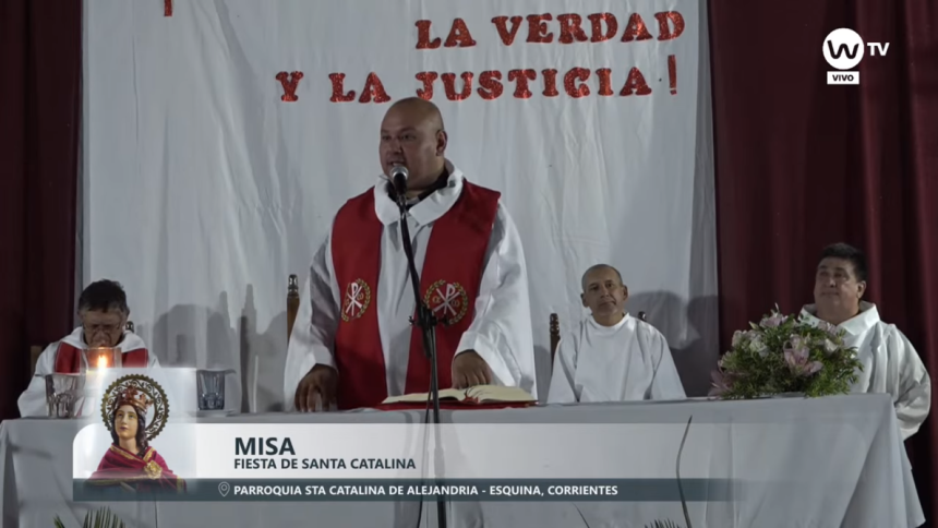 La Misa central fue presidida por el párroco Pedro Pablo Ojeda, quien en su homilía dedicó una profunda reflexión a la figura de Santa Catalina. El sacerdote destacó el significado del nombre de la patrona, de origen griego, que remite a “la pura y la fuerte”, rasgos que —según señaló— se reflejan en su vida, su búsqueda constante de la verdad y su compromiso con la justicia.