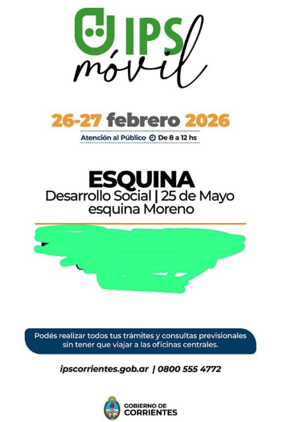 La delegada de Desarrollo Social de la Provincia en la ciudad, Mónica Sumaruga, informó que este jueves y viernes estarán presentes las oficinas móviles del Instituto de Previsión Social (IPS) en la sede ubicada en 25 de Mayo y Moreno.