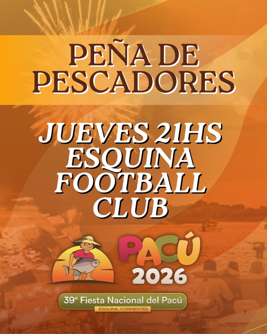 La Fiesta Nacional del Pacú, que se celebra en la ciudad de Esquina, Corrientes, informó un cambio de sede para uno de sus eventos más esperados. Debido a las condiciones climáticas, la tradicional Gran Peña de Pescadores se realizará en el Esquina Football Club.