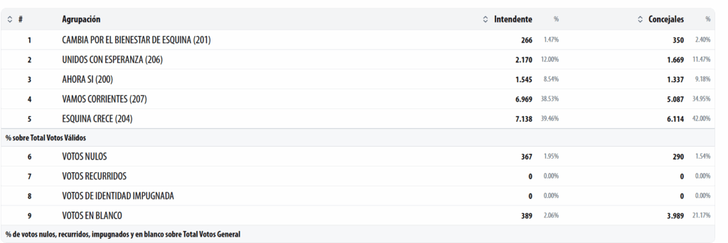 Ver los resultados definitivos en: https://eleccionesmunicipales2025.corrientes.gob.ar/
