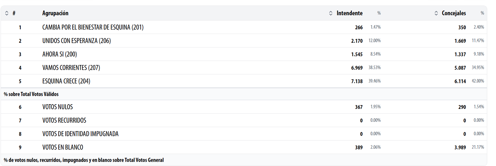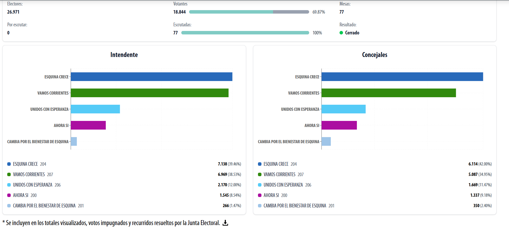 Ver los resultados definitivos en: https://eleccionesmunicipales2025.corrientes.gob.ar/