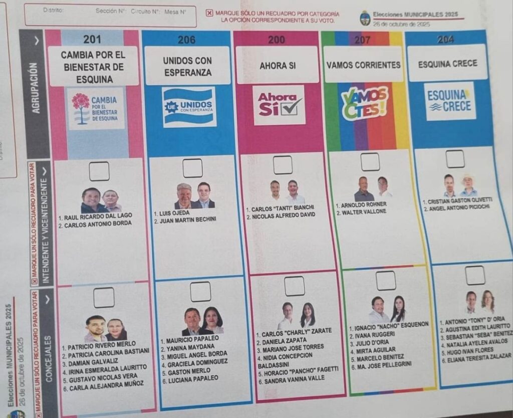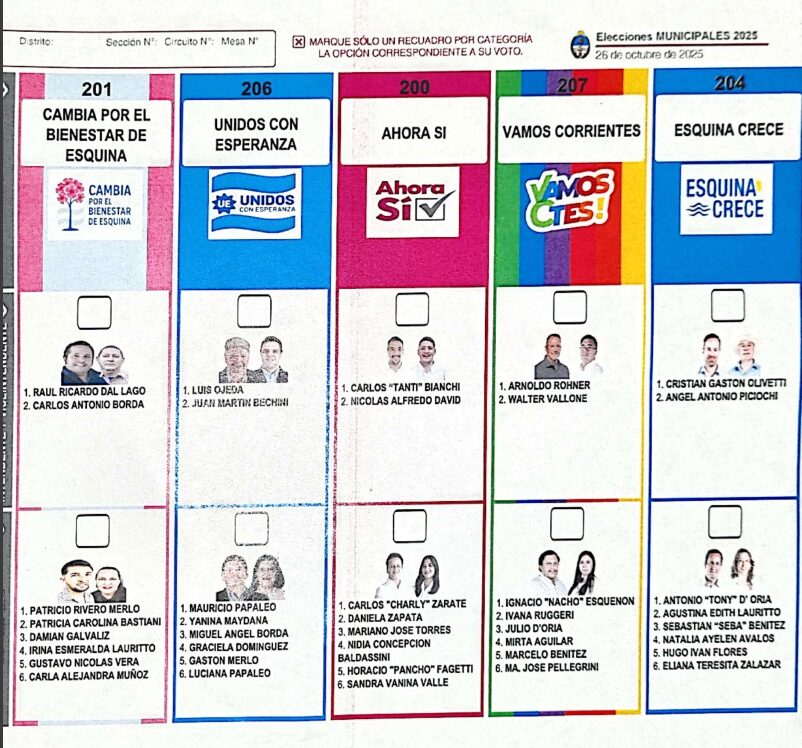 Este jueves, la Junta Electoral Nacional llevó a cabo la audiencia prevista en el artículo 38 de la Ley 26.571, con el objetivo de sortear el orden de los espacios, franjas y columnas de la Boleta Única de Papel (B.U.P.) que se utilizará en las elecciones simultáneas del municipio de Esquina, a realizarse el próximo 26 de octubre.