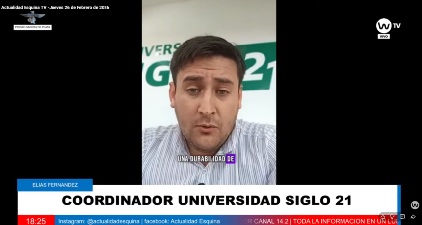 La Universidad Siglo 21 ya cuenta con una sede en la ciudad de Esquina. En diálogo con Actualidad Esquina TV, el coordinador local Elías Fernández brindó detalles sobre la oferta académica, modalidades de cursado e inscripciones.