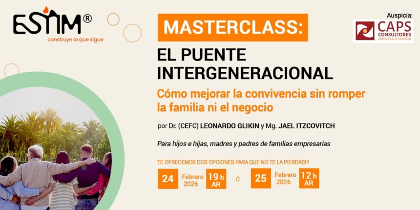 Cuando esa convivencia no se diseña, la transición ocurre igual… pero suele aparecer como tensión, silencios, confusión de roles o conflictos que terminan afectando tanto a la relación como al negocio. Esta Masterclass gratuita de 1 hora te propone un mapa claro y práctico: cómo construir el “puente intergeneracional” para mejorar la convivencia, ordenar expectativas y preparar el terreno para la continuidad sin presión, sin culpa y sin crisis.