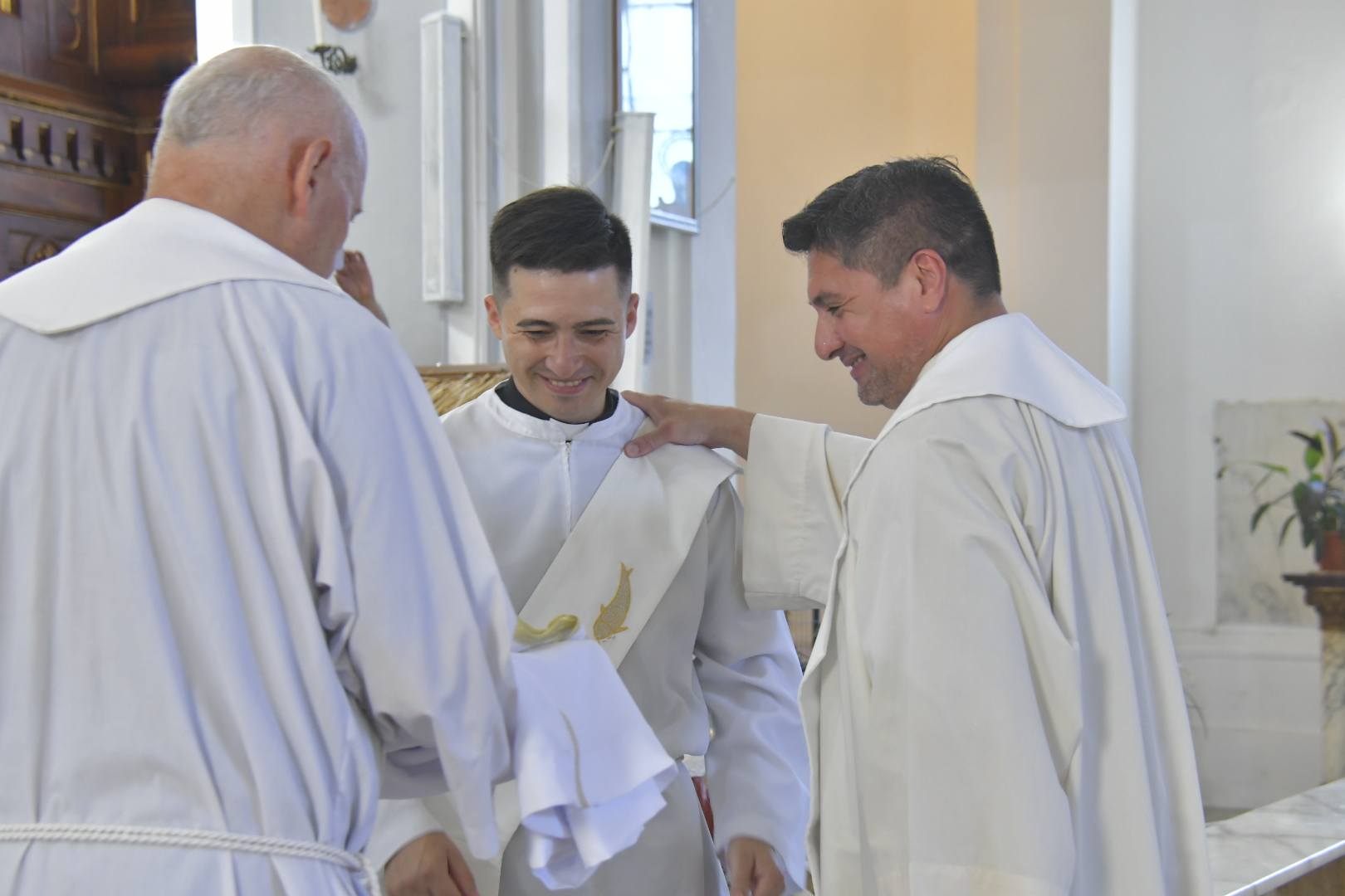 Durante la celebración, los padres del nuevo diácono presentaron los ornamentos propios del orden diaconal, la estola y la dalmática, como signo de haber ofrecido a su hijo al servicio de la Iglesia. El diácono Guillermo Josué Cañete fue revestido por el padre Rubén Cattay, quien lo bautizó en la ciudad de Esquina, y por el padre Ariel Giménez, también oriundo de Esquina, quien acompañó antes de ingresar al seminario.